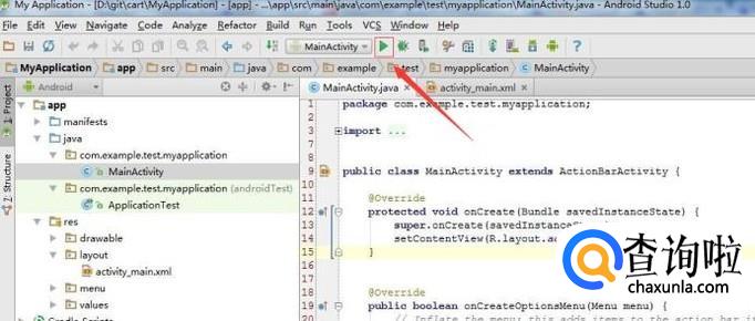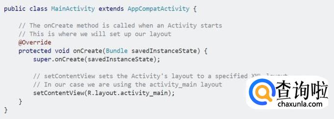 这里是窗口的java主类,android的主要编程语言是java语言,当然也有支持c++编程的ndk,以及现在很火的前端脚本编写android项目的方法,这个类表示主窗口,OnCreat()方法会在这个界面被启动的时候执行。