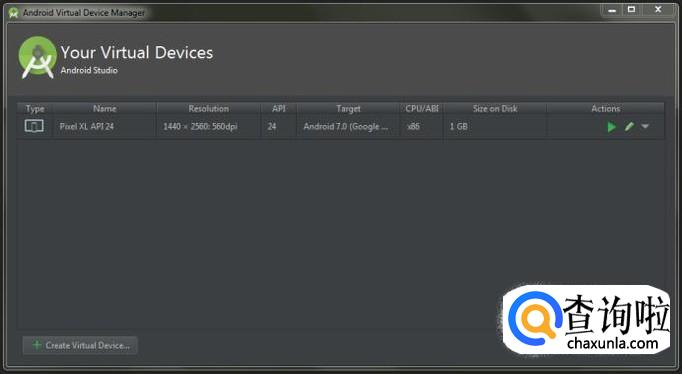 我们启动的应用就是跑在这里的模拟器当中的,我们可以创建自己的模拟器,自由的对模拟器的配置进行自定义,包括模拟器的系统版本