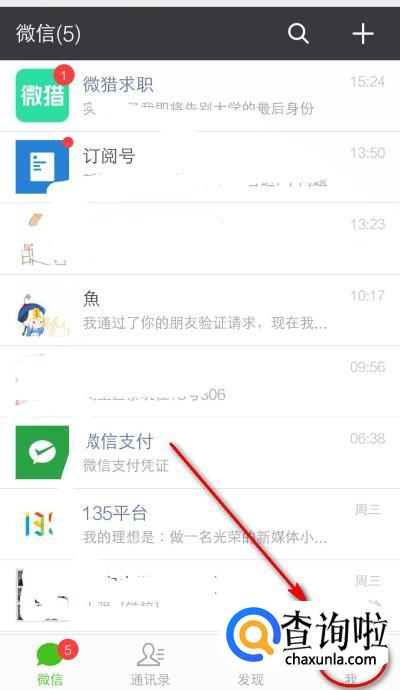 登陆手机上的微信,然后再切换到“我”选项卡。