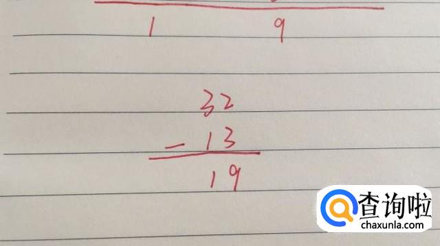 最后列个简单的竖式,孩子最开始可以麻烦点,到最后熟悉了就可以直接心算了,最后得到结论32-13=19。
