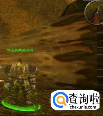 破坏上面所有标记点的石头以后,即可回去找【部落英雄的灵魂】完成此任务,NPC位置在悲伤沼泽到诅咒之地的门口,具体坐标见下图。