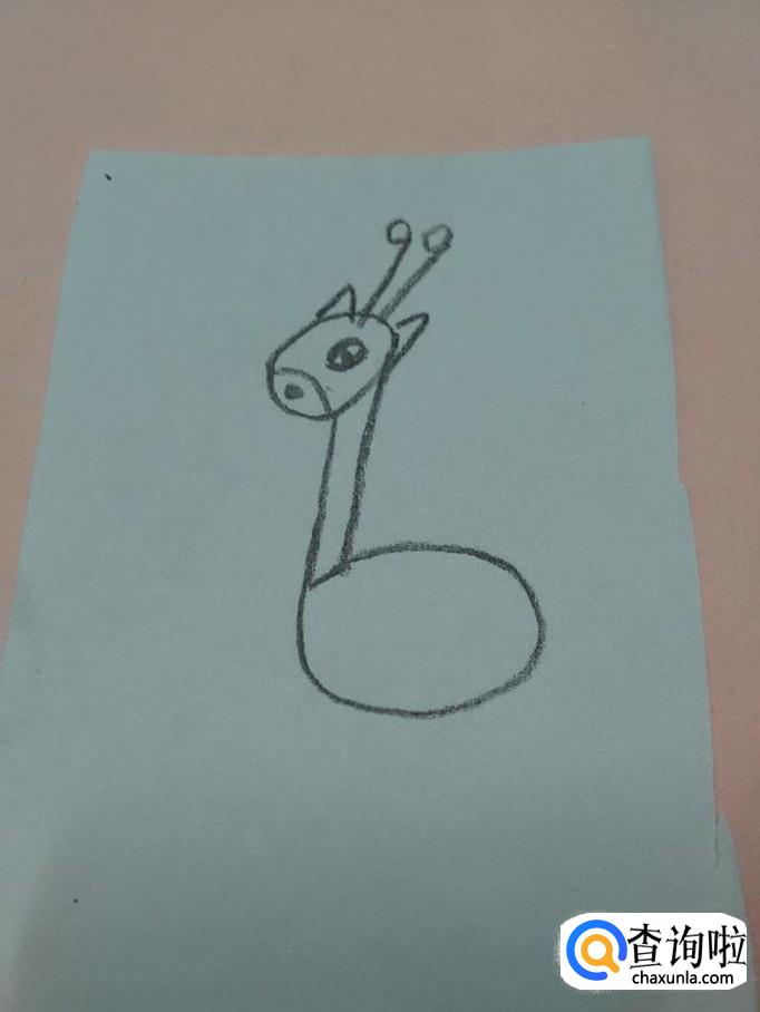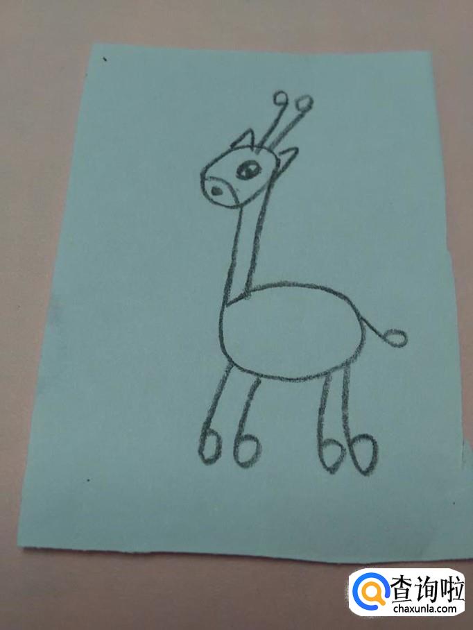 先用黑笔在纸上画一个9,表示长颈鹿的头和脖子。