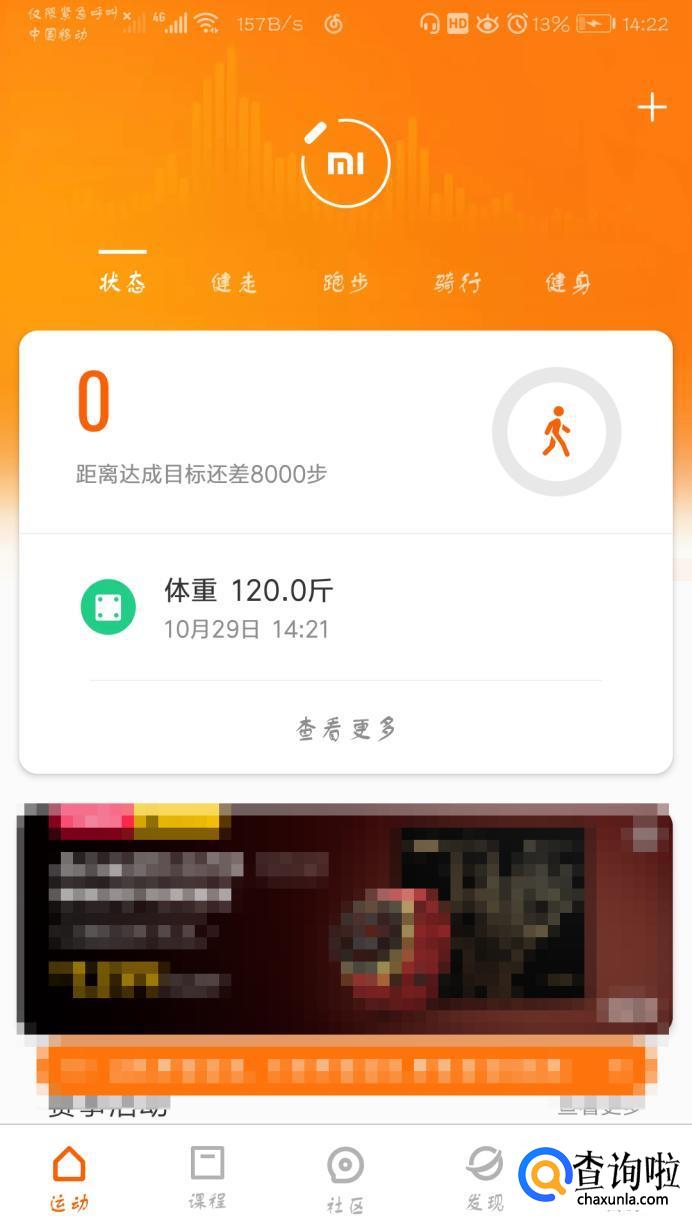 打开手机,打开小米运动,再点击主界面右上方的“+”图标。