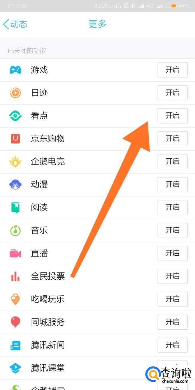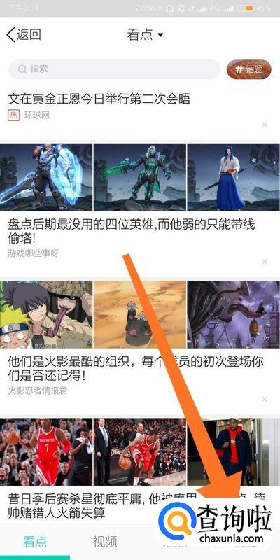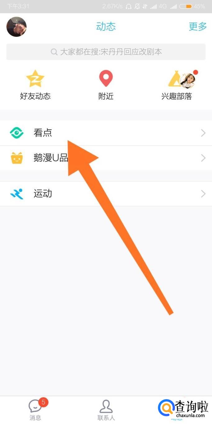 首先点击进入“看点”功能。
