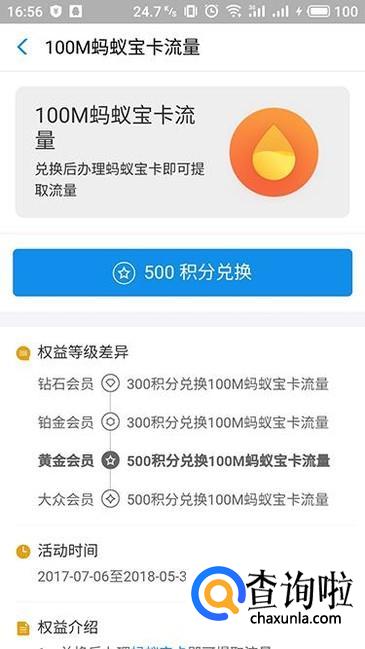 在“换流量”中,用户还可以根据会员等级花费不同的积分来兑换流量,等级越高所需积分就越少。