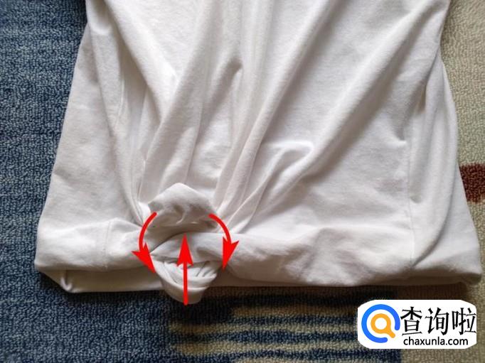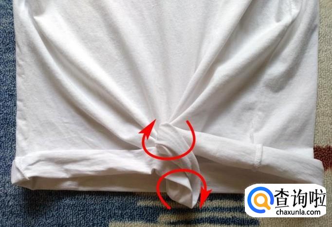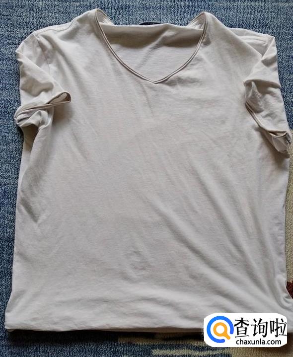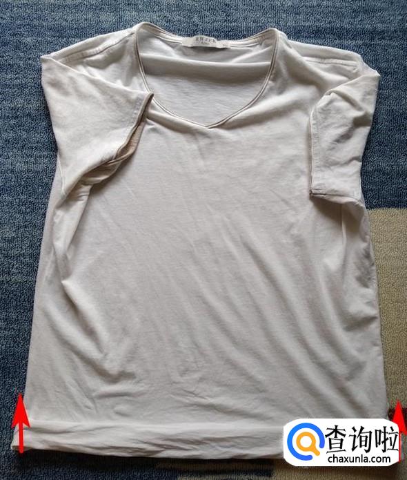 再将T恤翻回来,把底边稍微整理一下,显得整齐些;