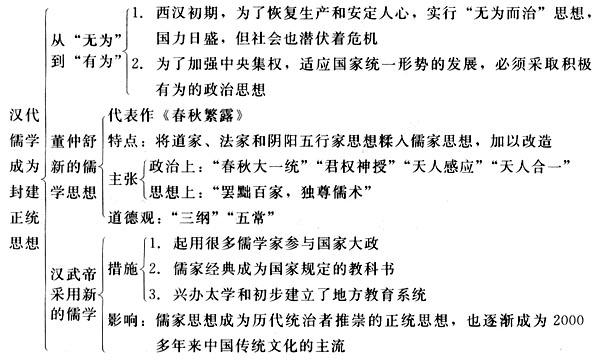 董仲舒认为,在人伦关系中,君臣、父子、存在着天定的、永恒不变的主从关系:君为主、臣为从;父为主,子为从;夫为主,妻为从。即所谓的“君为臣纲,父为子纲,夫为妻纲”这三纲。董仲舒又认为,仁、义、礼、智、信五常之道则是处理君臣、父子、夫妻、上下尊卑关系的基本法则,治国者应该给予足够的重视。 三纲五常之说,起于董仲舒,完成于朱熹。但是董仲舒没有将“三纲”和“五常”并提连称,首次并提连称的是东汉后期的经学家马融。这种并提连称意味着封建思想家终于把封建纲纪和处理这种纲纪的道德原则结合为一体,构成了一个完整的政治伦理道德体系。宋朝时期,“朱熹发展天理说,把“三纲五常”与“天理”联结在一起,他认为三纲、五常是天理的展开,是“天理”体现于社会规范的当然的产物,是永恒不变的协调社会关系的妙药”,至此,朱熹的“理一分舒”论便成为社会生活秩序的规范了。