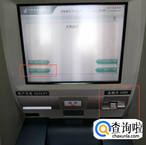 取走现金后,界面会显示 “交易成功”,按“取卡”键取出卡片,结束操作。