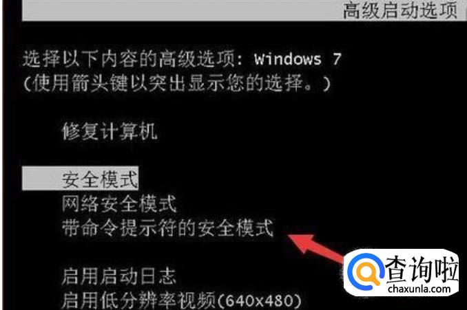 先启动Win7系统,然后在开机之前在键盘上按“F8”,然后就会出现“高级启动选项”页面,选择“带命令提示符的安全模式”。