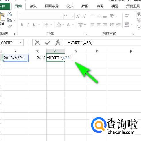 比如,我们在C78单元格输入函数公式:=MONTH(A78)