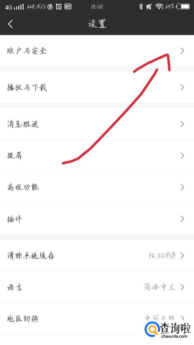 点击“设置”选项,如图1箭头所示。你会看到出现一个新的界面,点击“账户与安全”选项,如图2箭头所示。