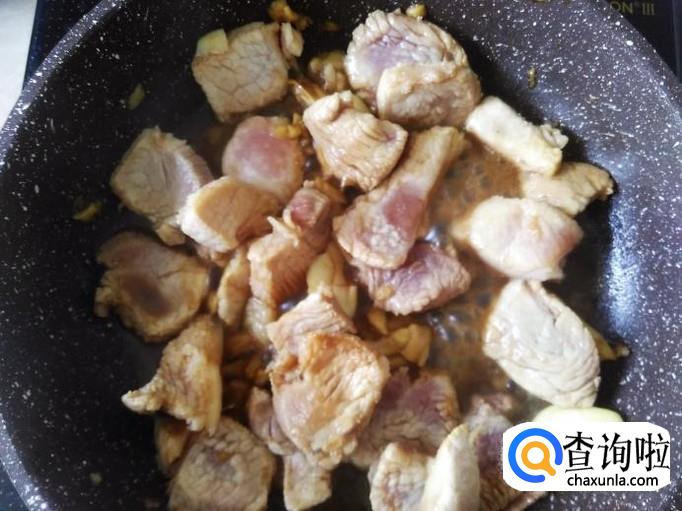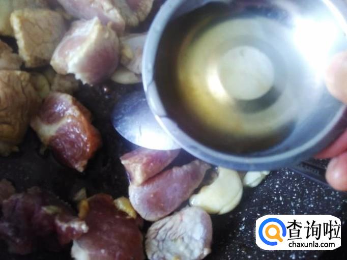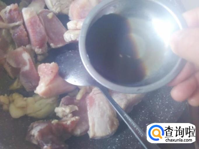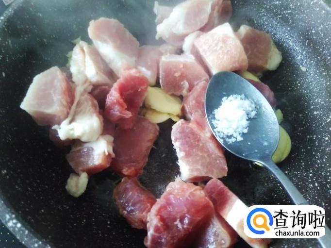 猪肉下锅,加适量的盐,1勺生抽。