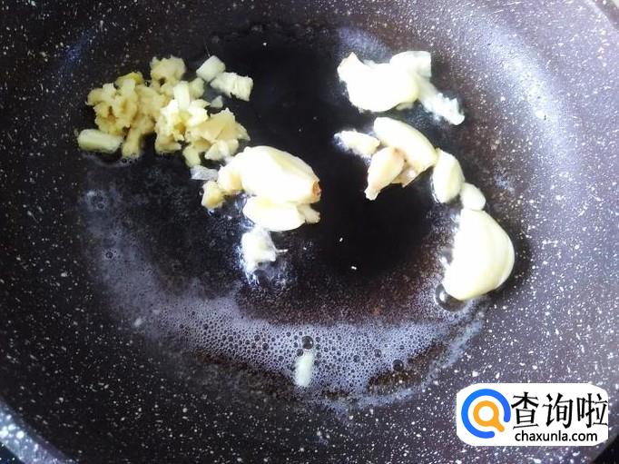 开火下油,放蒜米进去爆香。
