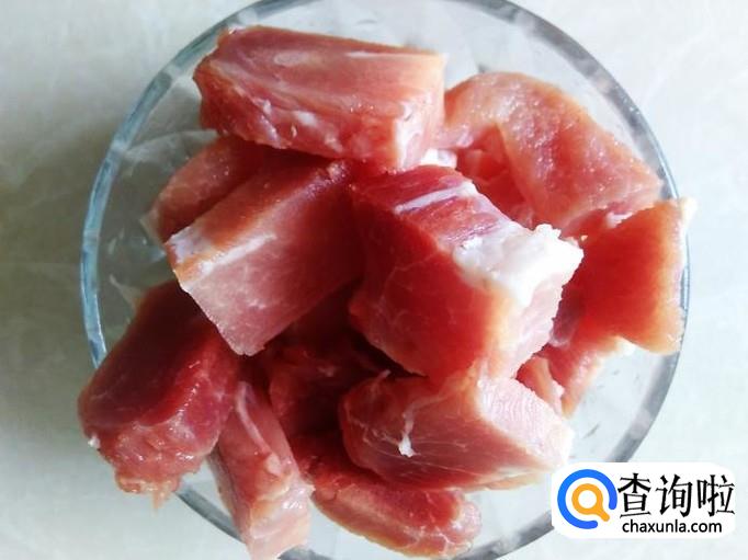 然后把猪肉清洗干净,切成方块。