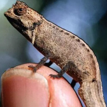 侏儒枯叶变色龙(Brookesia),是一种罕见的迷你变色龙,体长不到3厘米,它们是在马达加斯加西北海岸的诺斯比岛的雨林中发现的,雌性的个头要比雄性略大一些。
