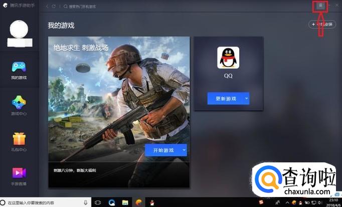 在电脑上打开腾讯手游助手,点击右上角的“设置”按钮