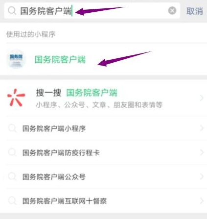 2、输入“国务院客户端”,点击进入。