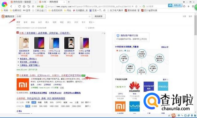查询小米手机的真伪自然在官网上面是能够查询得到的。这时候需要利用搜狗搜索“小米”,找到后面带有“官网”的字样,进入小米官网