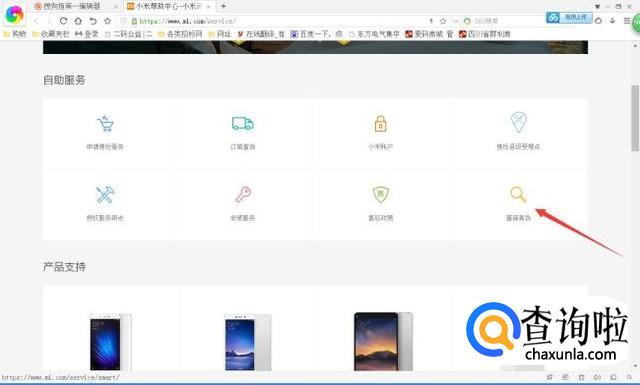 进入小米官网之后,在导航栏中点击“服务”字样,进入小米的服务类别