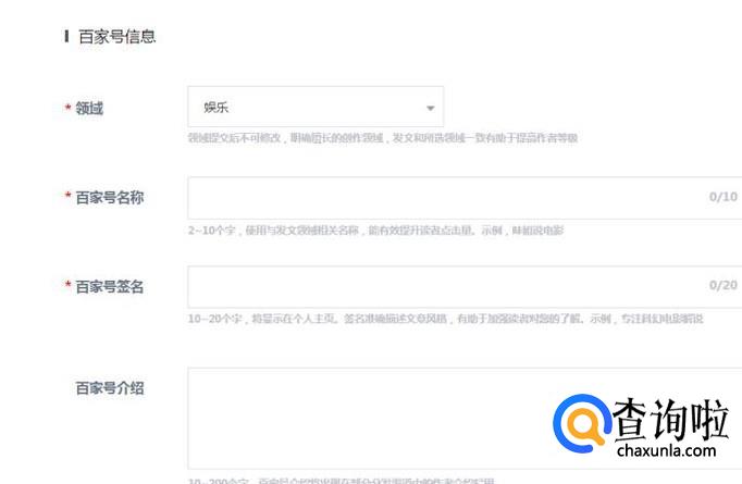 然后填写你的百家号信息,如下图所示。