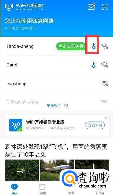 wifi万能钥匙如果要查看密码,首先点击钥匙,点击加入,连接成功后,点击四叶草标志,接着把带有二维码的图片保存在手机相册里,接着打开微信,点击右上角+这个符号,再点击扫一扫,然后点击相册,找到保存的二维码图片,扫描后即可看到密码。