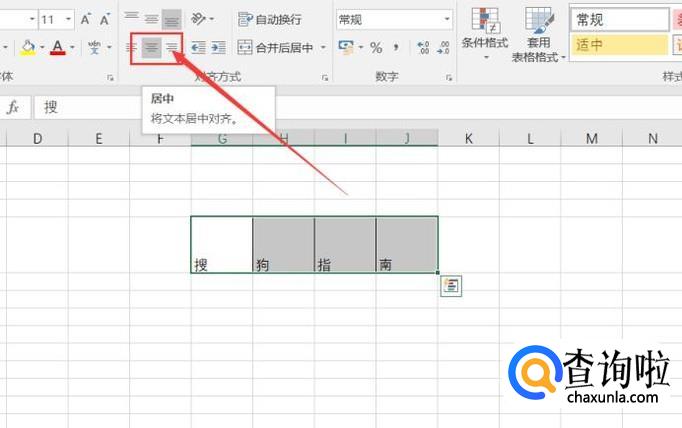 接下来,点击表格页面顶部的“居中”按钮,使表格中的文字首先在水平方向上居于居中位置。