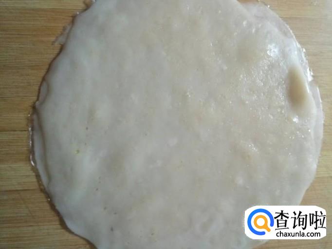 凉透以后用手揭下来,放到案板上,刷一层油,依次做好剩下的。