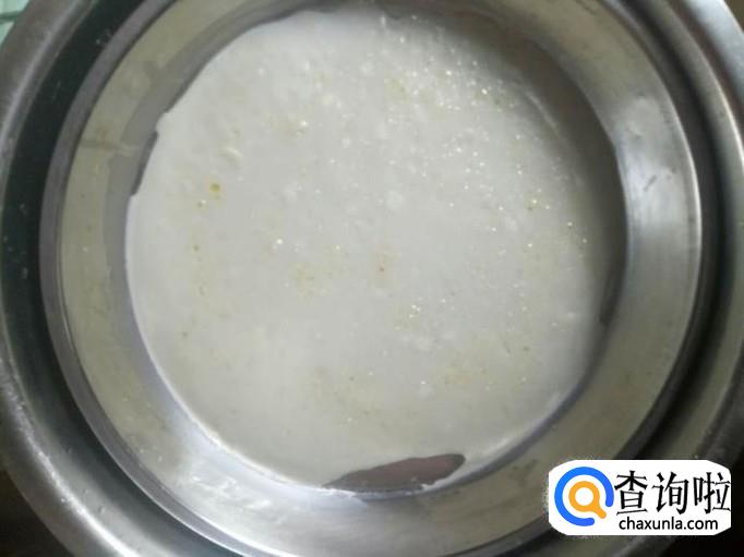 把面粉和淀粉以2:1的比例放倒盆里,放入少许盐,用水搅拌至没有面疙瘩。