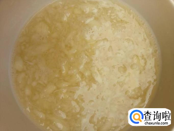 把剥好的蒜做成蒜泥,放进小碗里,再倒一些清水,备用。