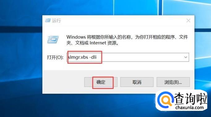 之后我们输入slmgr.vbs -dli,然后我们点击确定;