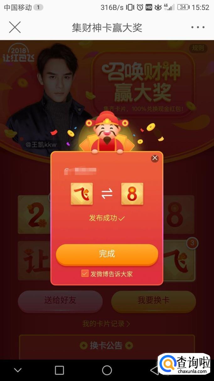 集卡成功后记得兑换你的红包哟!