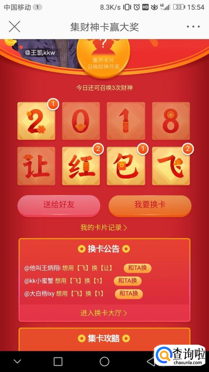 此外,你也可以通过进入“换卡大厅”,查看别人的换卡信息,找到你想要的卡片,然后进行交换。