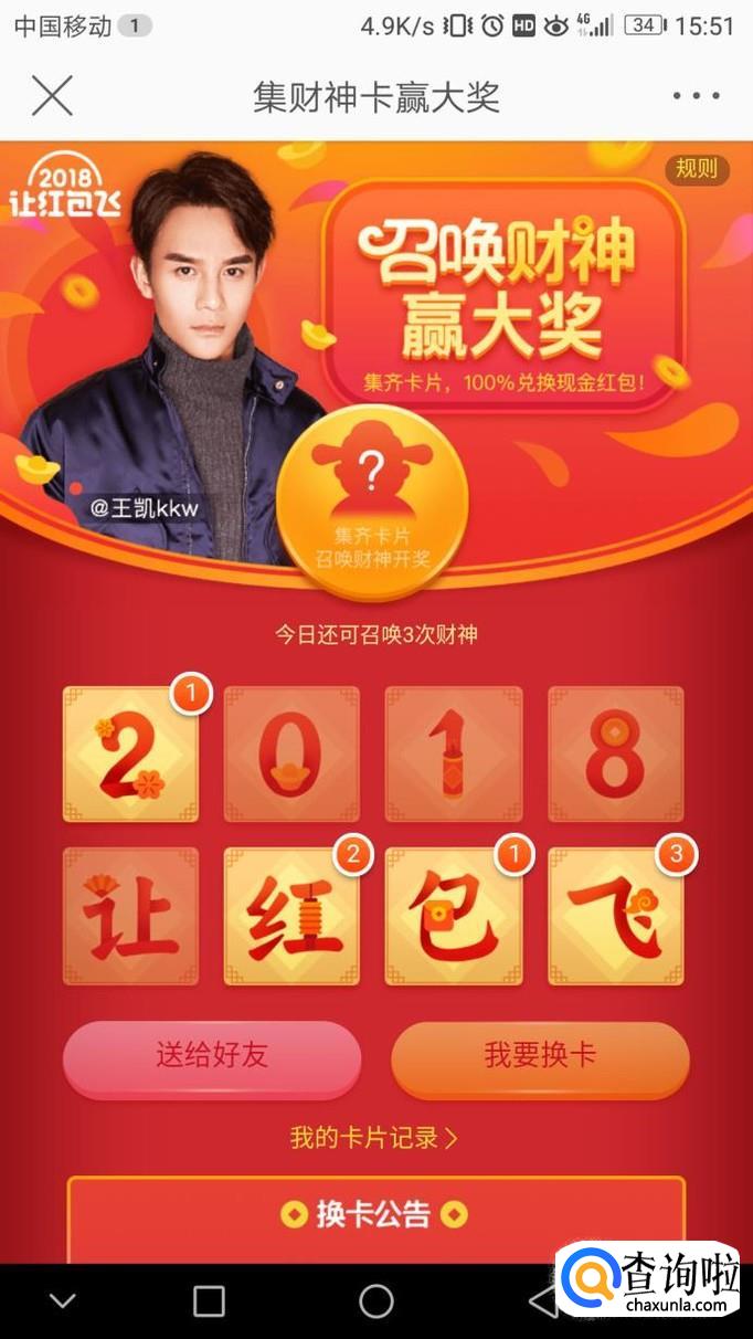 页面跳转后,点击下方“财神卡”,进入活动页面。