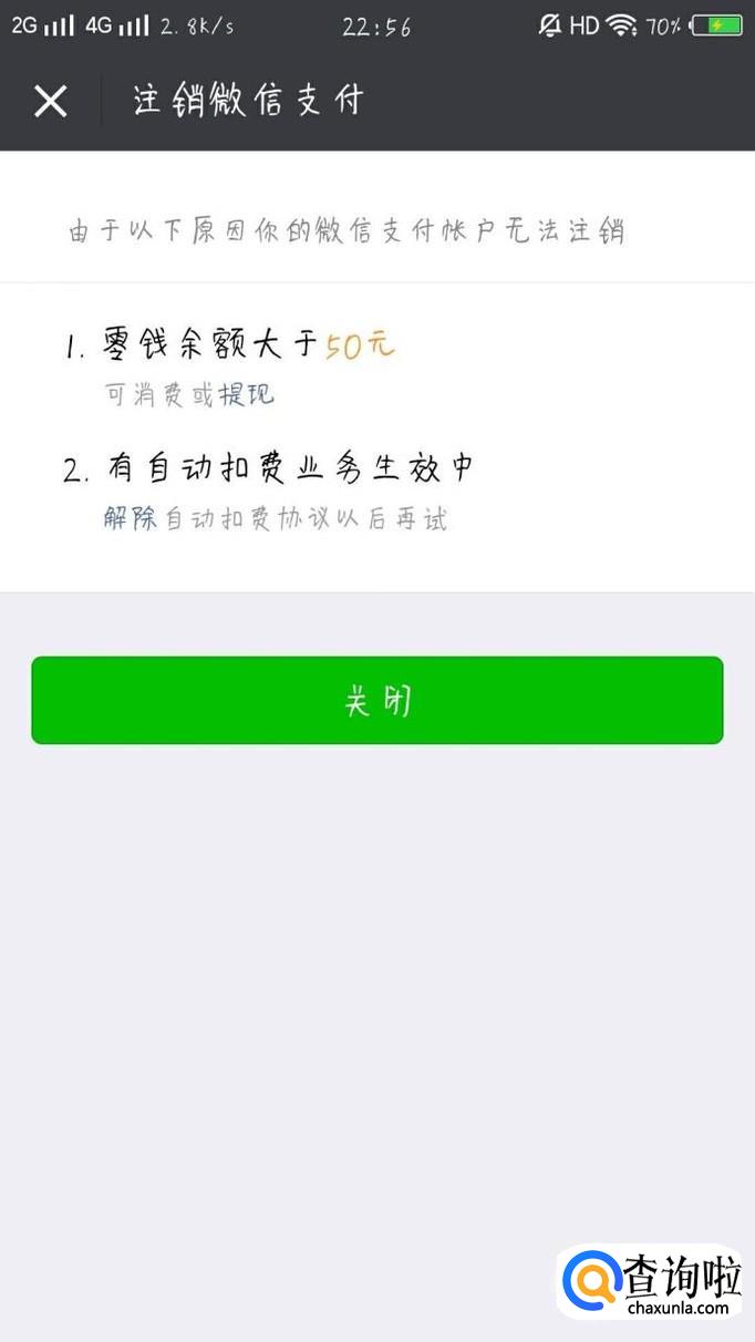 在“支付管理”页面,点击“注销微信支付”,进入下一页面,点击“关闭”即可,如图所示。
