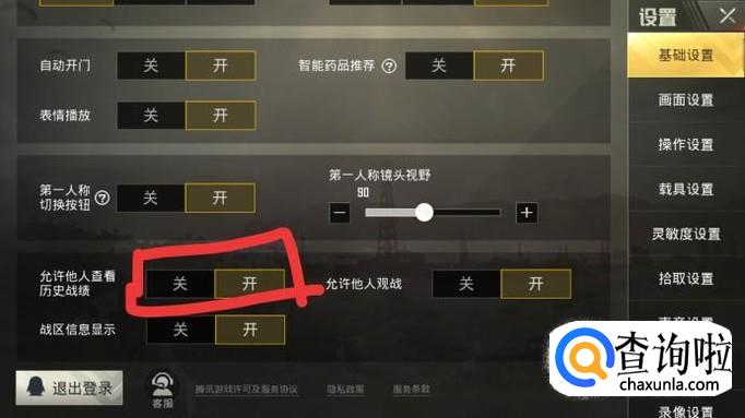 在设置中最主要的页面是一些基础设置,往下滑到底部就是查看战绩的设置。
