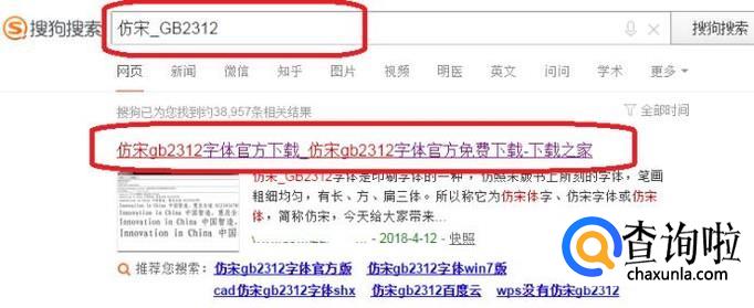 首先,我们需要在浏览器下载我们需要的字体,比如说我需要安装“仿宋_GB2312”字体,用搜狗搜索,找到资源下载即可。