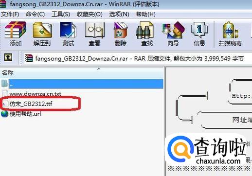一般下载下来的资源都是压缩包形式,我们需要用WINRAR解压缩一下,如图所示,我们需要解压缩之后的“.ttf”字体文件。