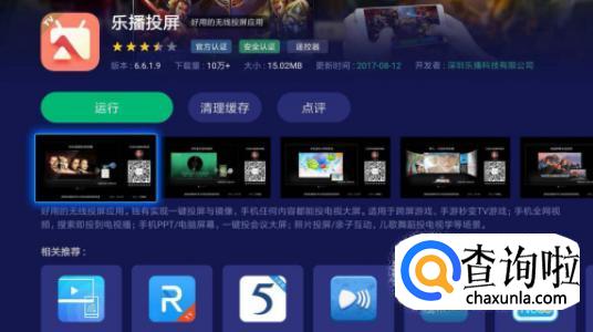 找到投屏软件乐播投屏,点击下载安装,并且点击运行。