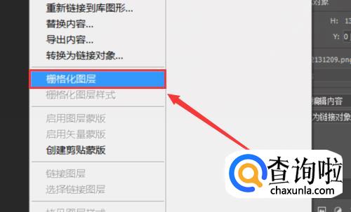 右键,选择“栅格化图层”。