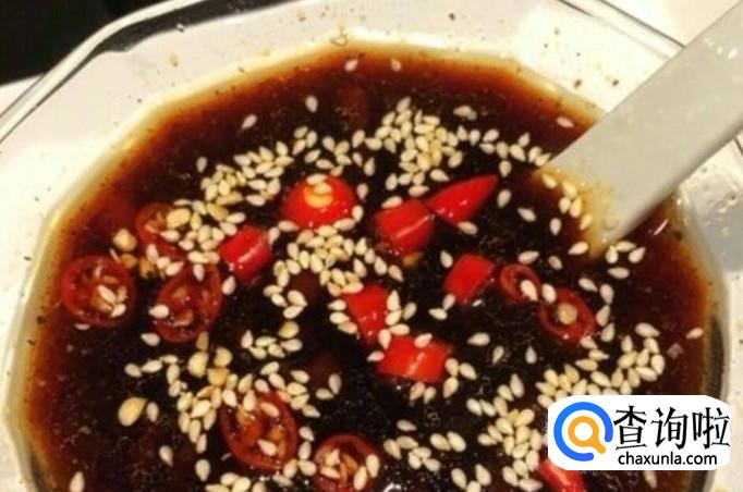 然后调酱汁,料酒、生抽、耗油、醋、盐、糖、鸡精、花椒面、白芝麻、香油、鸡精、小米椒等,按照自己的口味添加。