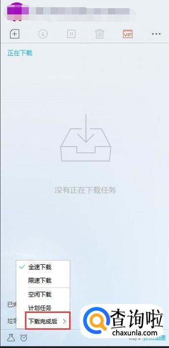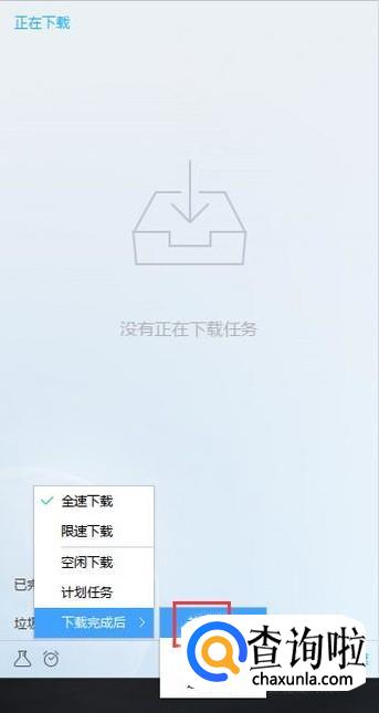 点击该图标,在弹出菜单中点击“下载完成后”选项。