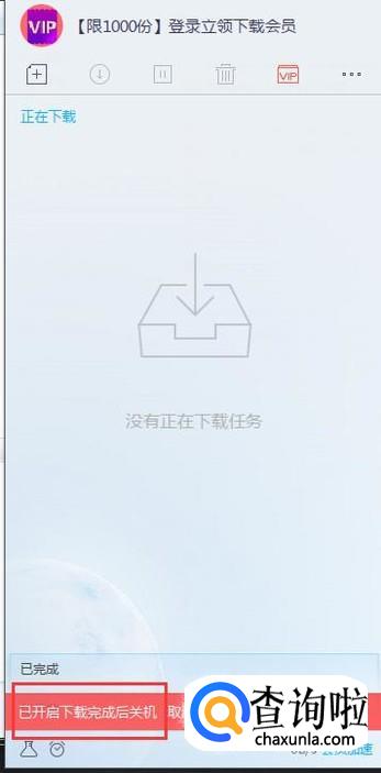 如图,我们已经在迅雷9中开启了下载完成后关机的功能。