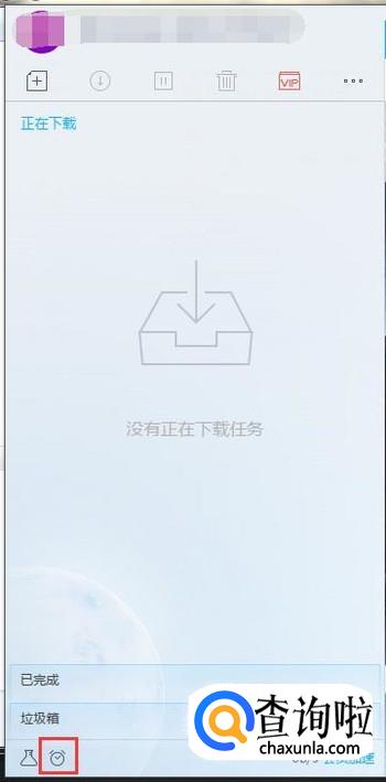 在迅雷主界面左下角找到闹钟形状的图标。