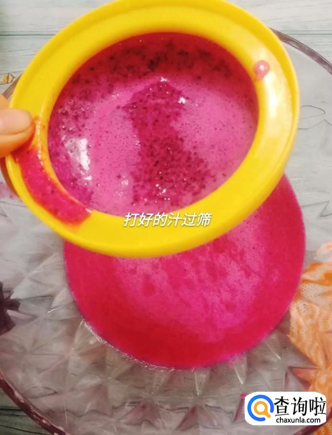 接着将打好的汁过滤,如下图所示。