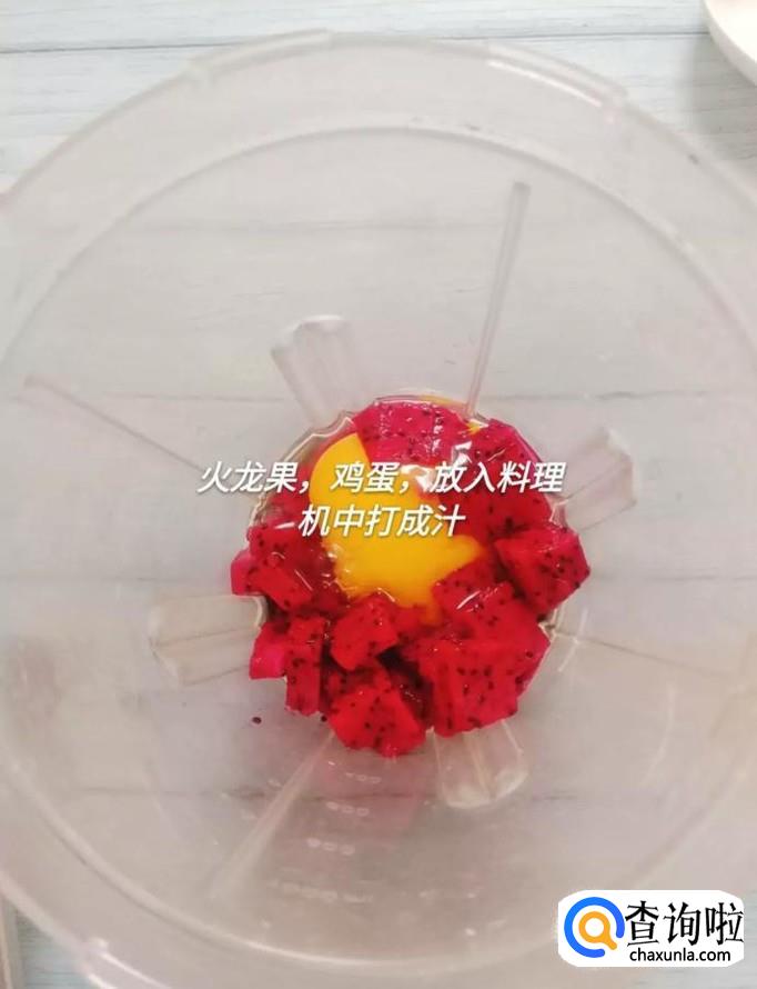 然后将火龙果和鸡蛋放入料理机中打成汁,如下图所示。