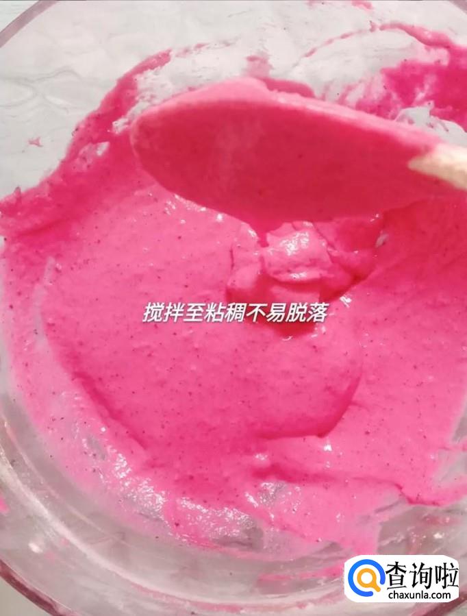 然后在火龙果汁中加入适量的面粉,如下图所示。