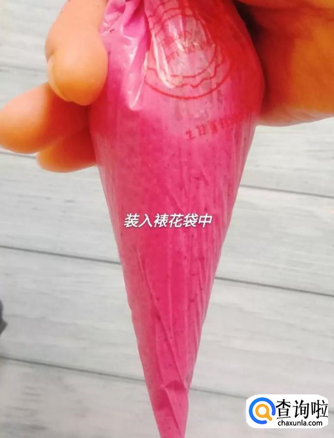 然后把面糊装进裱花袋,如下图所示。
