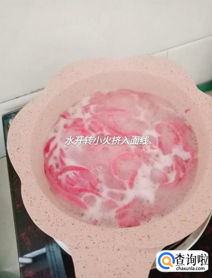 一道美味可口的火龙果面线就做好了,希望大家能够喜欢。你学会了吗?赶快动手试一试吧。