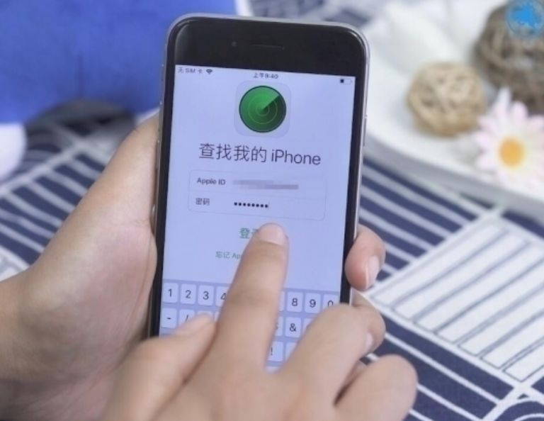 3、返回桌面,打开查找iphone,登录对方的ID账号进入;