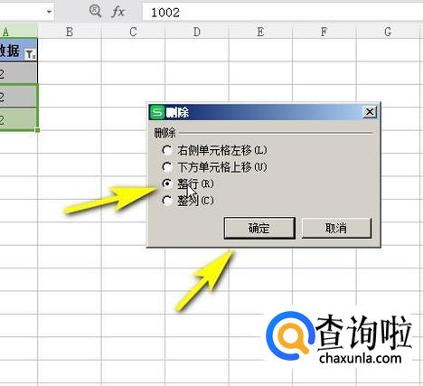 弹出的对话框中,选择:整行,再点确定。
